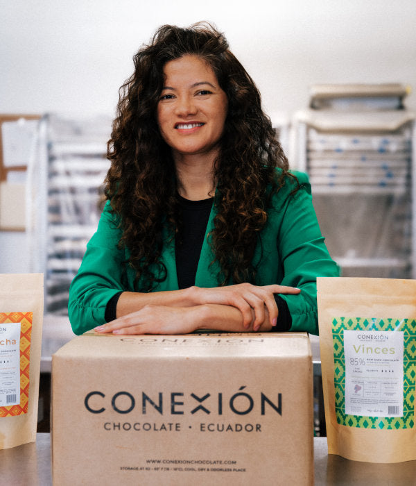 Jenny Samaniego, an Ecuadorian chocolate maker, works alongside small-scale cacao farmers to create exceptional specialty chocolate couverture at origin. With a passion for cacao sparked in her homeland, Jenny believes in producing exquisite high-end chocolate in Ecuador, known for its renowned Arriba Nacional heirloom cacao beans. As a female founder of Conexión, she brings a unique perspective to the male-dominated confectionery chocolate industry, defying the odds and making her mark.
